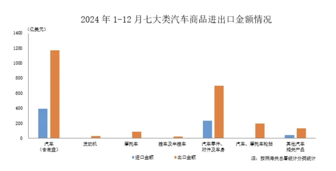 2024年1-12月,全国汽车商品累计进出口总额为3028.2亿美元,同比增长5.5%。其中进口金额690亿美元,同比下降11.3%;出口金额2338.2亿美元,同比增长11.7%。